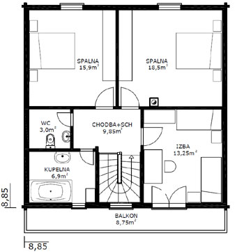 8,85 x 8, 85 m2