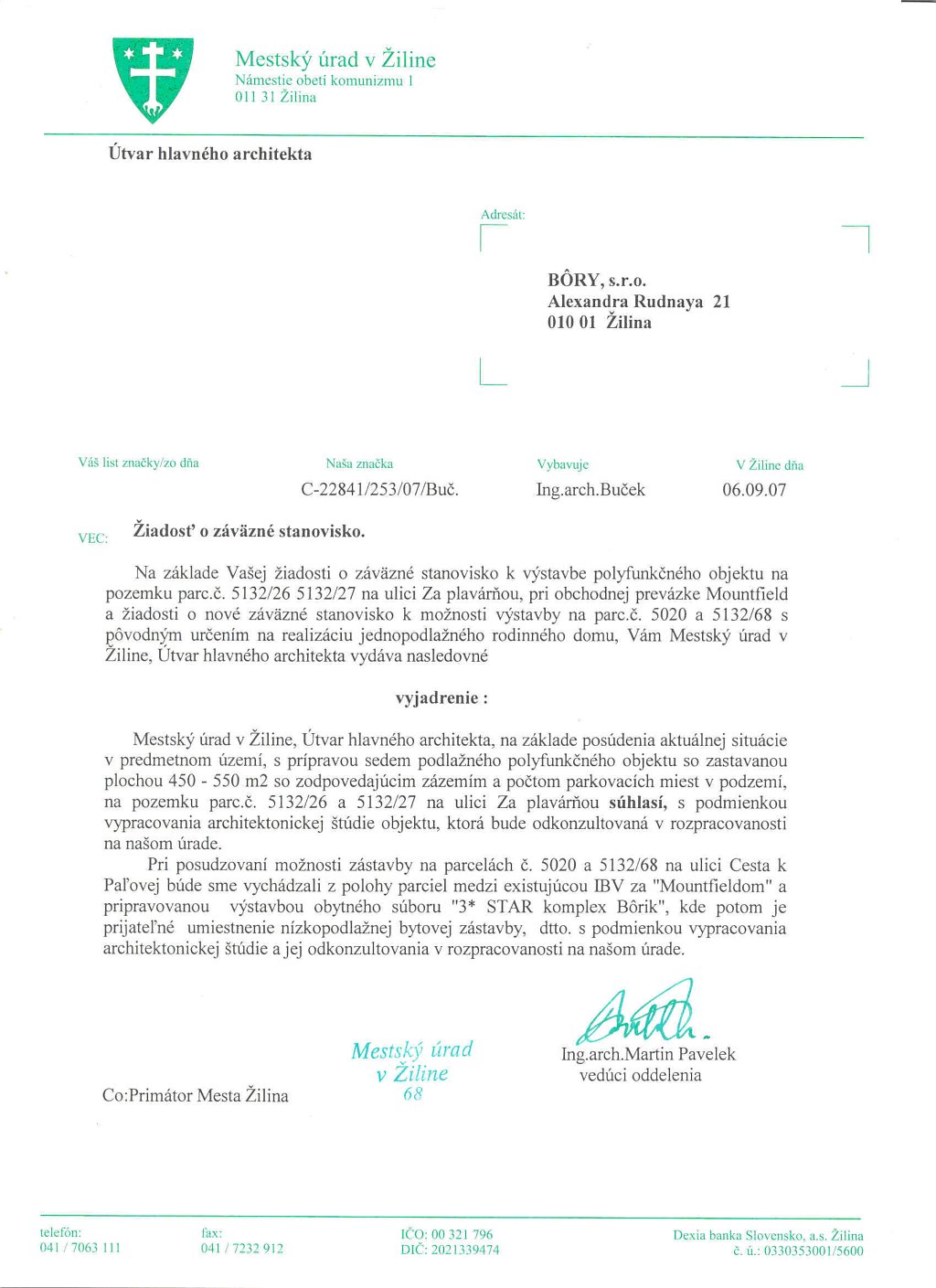 V priestore sa uvažuje s umiestnením objektu v maximálnej výške 6 podlaží, resp. nízkopodlažný objekt so znižujúcou sa výškou smerom k obchodnej prevádzke Mountfield ( nutná konzultácia na ÚH mesta Žilina).