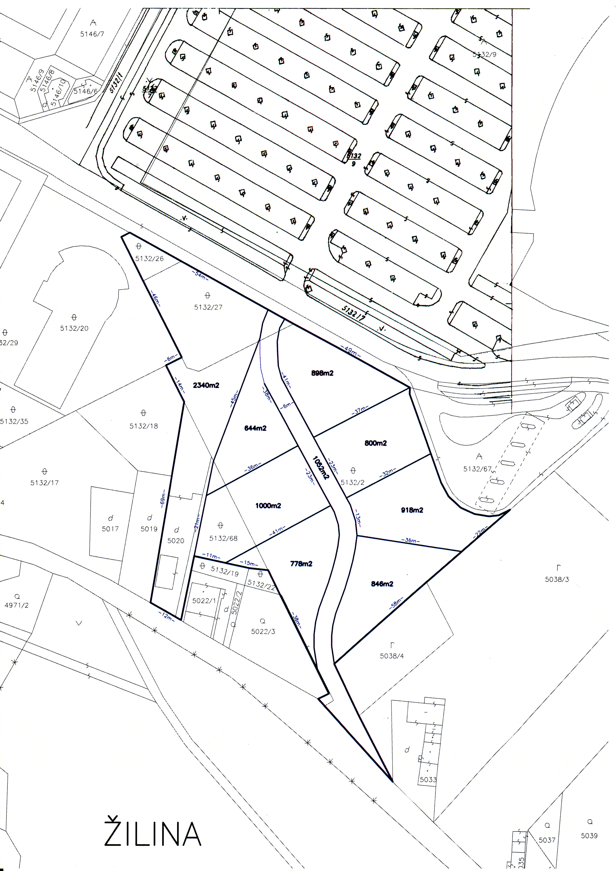 Návrh členenia priestoru do parciel:V PRÍPADE ZÁJMU, NAVRHNITE VLASTNÉ - možnosť úpravy