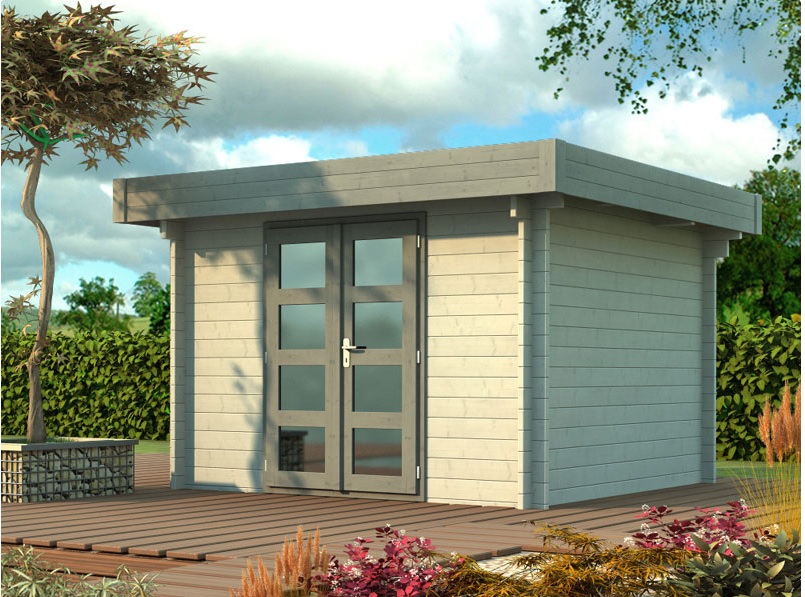D: Bočný presah strechy: 33 cmDvere: dvojkrídlové 120 x 175 cm, 2/3 sklo