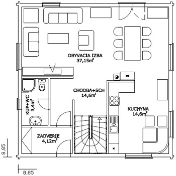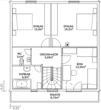 8,85 x 8,85 m